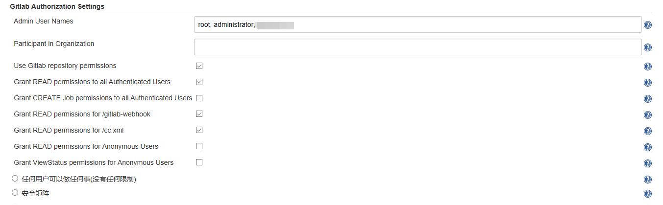 - Jenkins 全局安全配置(这里面可以配置通过 Gitlab 用户认证以及 Gitlab 授权)